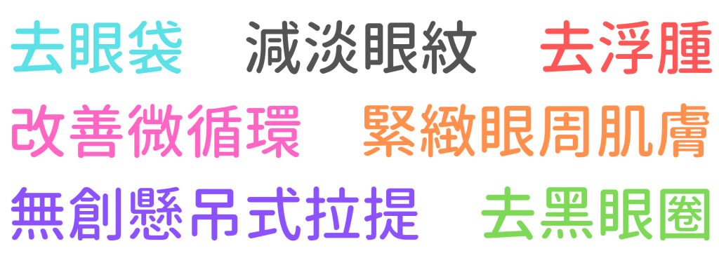 眼部提升療程,有助提升眼部肌膚,同時撫平眼周細紋,讓眼部肌膚回復年輕緊緻