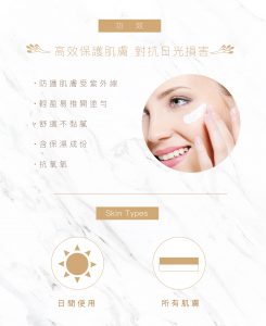 功效 : 具保濕及抗氧化的護膚成份清爽,薄潤,不黏膩