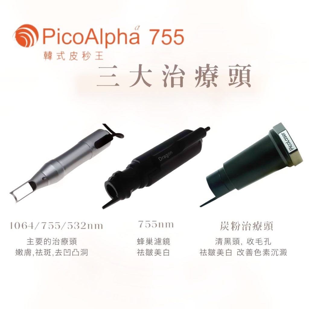 PicoAlpha利用的是755nm雷射,與淨膚雷射(Q開關1064nm雷射,傳統奈秒時間(nanosecond))比較下,皮秒雷射光治療速度快7倍,而且755nm雷射對黑色素吸收的效果遠高於1064nm,對除斑效果很優異。